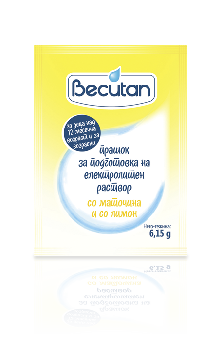 It is recommended to use BECUTAN electrolyte with sweet fennel and BECUTAN electrolyte with lemon balm and lemon under medical supervision. Preparation is simple - one sachet of Becutan powder (6.15 g) is dissolved in 300 ml of freshly boiled and cooled water.
