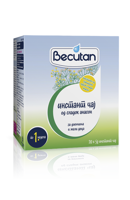 Prepared from carefully selected herbs of proven quality, Becutan instant teas are available as a blend of f aniseed essential oil and easily digested sugars, completely safe to consume immediately after the first week of birth. Recommended for indigestion in infants and children. Tea improves digestion, prevents the production of intestinal gases, stimulates their release and calms cramps caused by bloated intestines.
