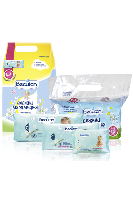 Becutan wet wipes contain a moisturizing lotion with chamomile extract that protects the skin from irritation, soothes redness and prevents its further spread. They leave a thin protective layer on the surface of the skin that nourishes and keeps the skin clean and healthy. They have a neutral pH and do not contain alcohol. Becutan wet wipes, in addition to the purpose of skin care in the areas covered with diapers, are also recommended for cleaning the baby's face and hands.